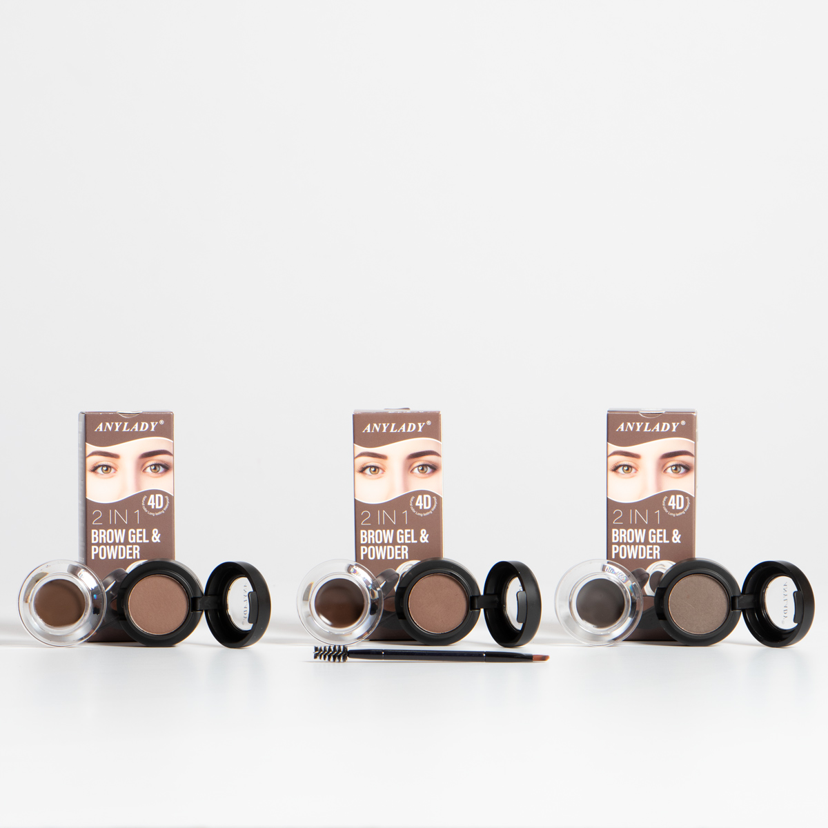 Kit de cejas con 1 pigmento en betún y 1 pigmento en polvo.