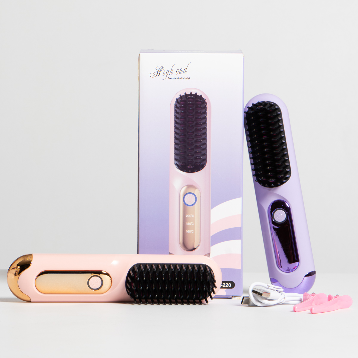 Puedes lograr un peinado sin esfuerzo con este innovador cepillo alisador de cabello, Cuenta con un diseño portátil e inalámbrico, lo que lo hace perfecto para viajar o para retoques rápidos en cualquier lugar. Trae con su cable para cargar y 2 pinzas para agarrar el cabello. Viene en 2 colores