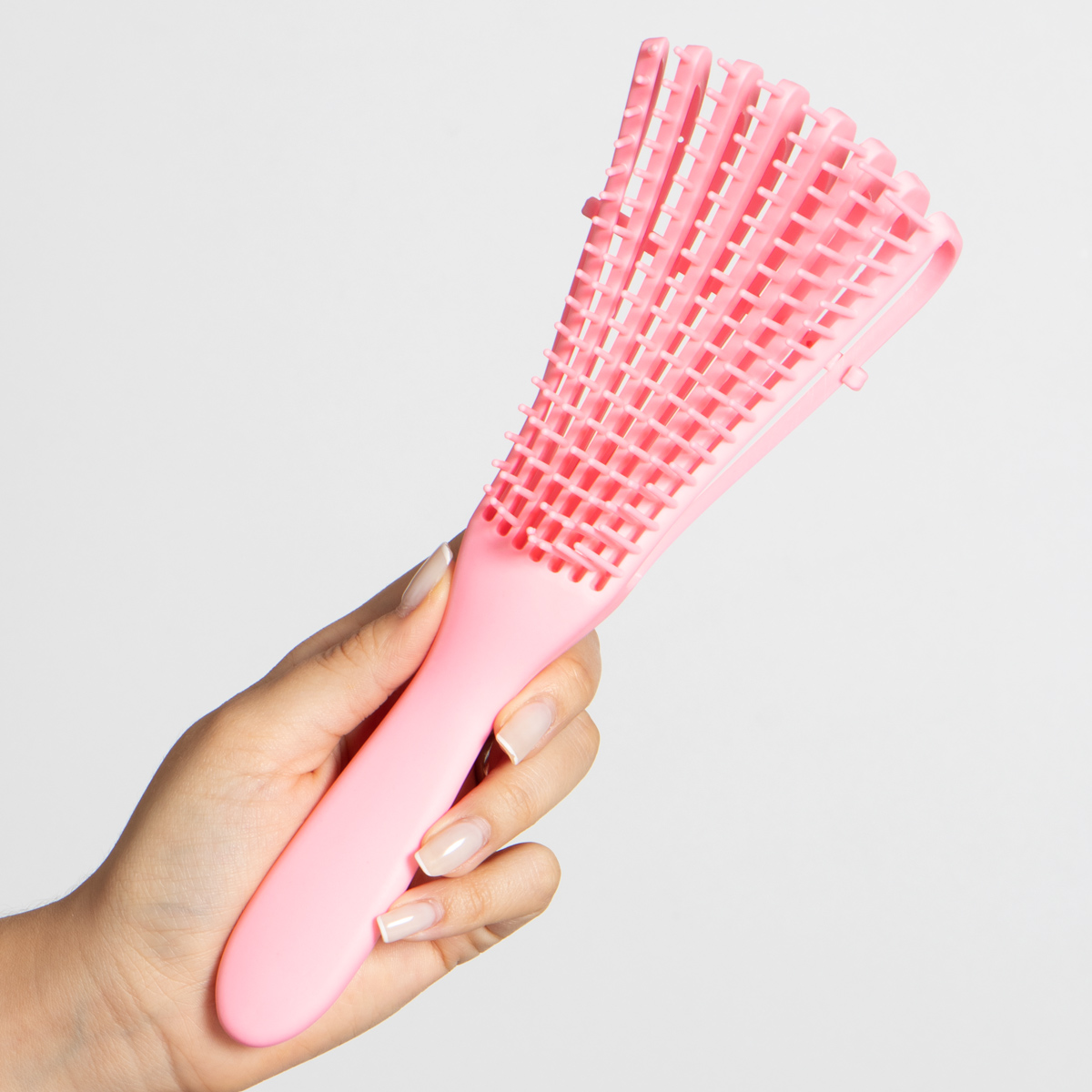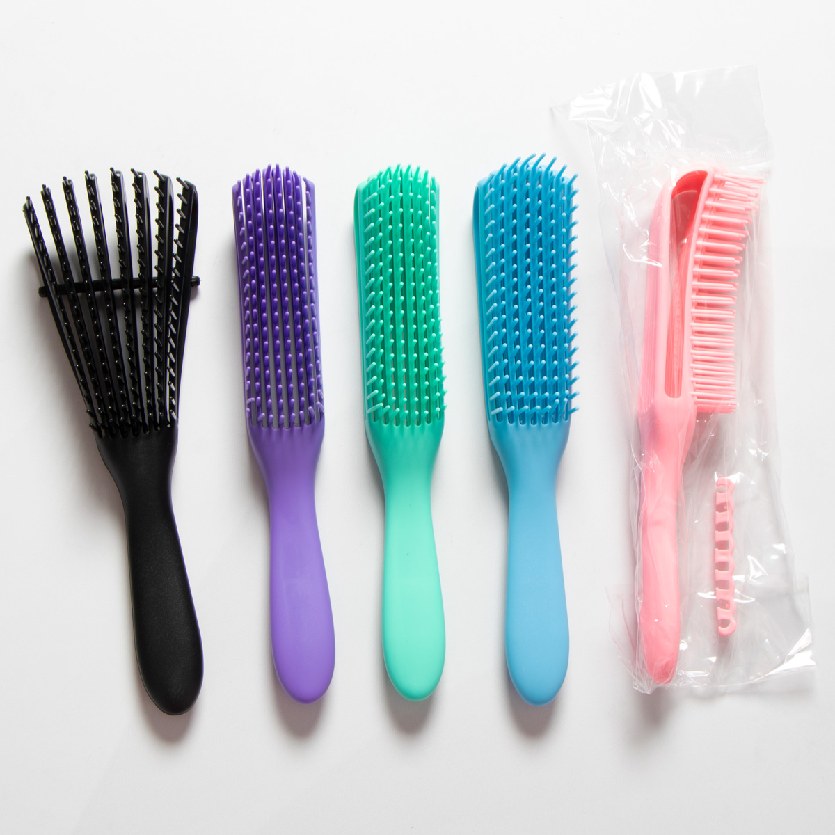 Gracias a su diseño desenreda los nudos con delicadeza, es apto para todo tipo de cabellos, quita el friz y suaviza. Viene en 4 colores y bolsa X12 UND. (NEGRO NO HAY)