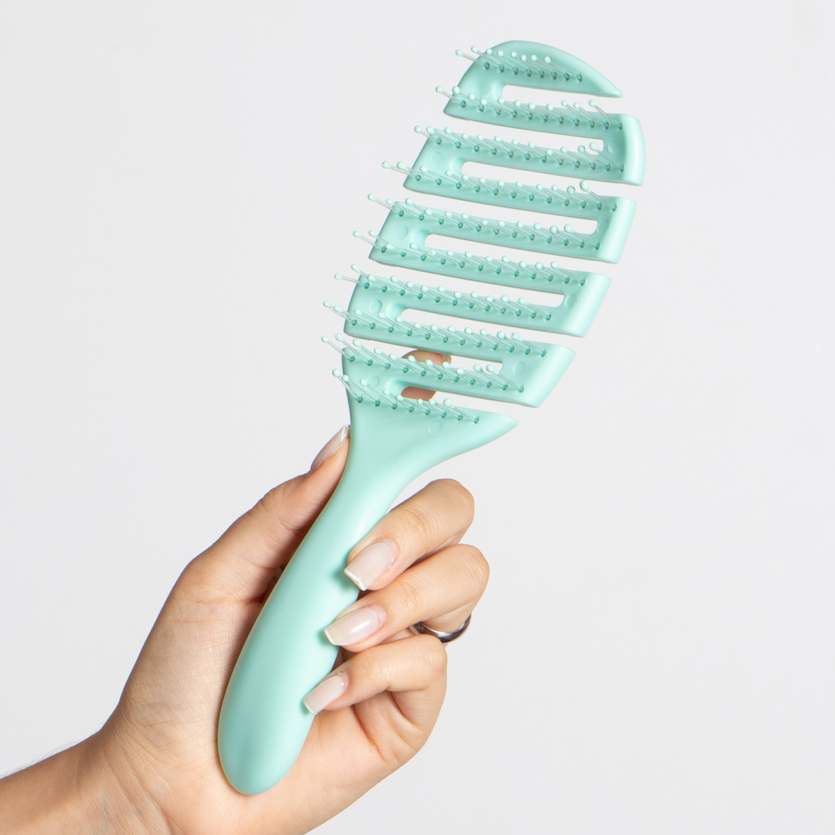Las cerdas son finas y flexibles, ayudan a desenredar el cabello mucho más rápido y así mismo a controlar el frizz. Viene en 3 colores y bolsa X12UND.
