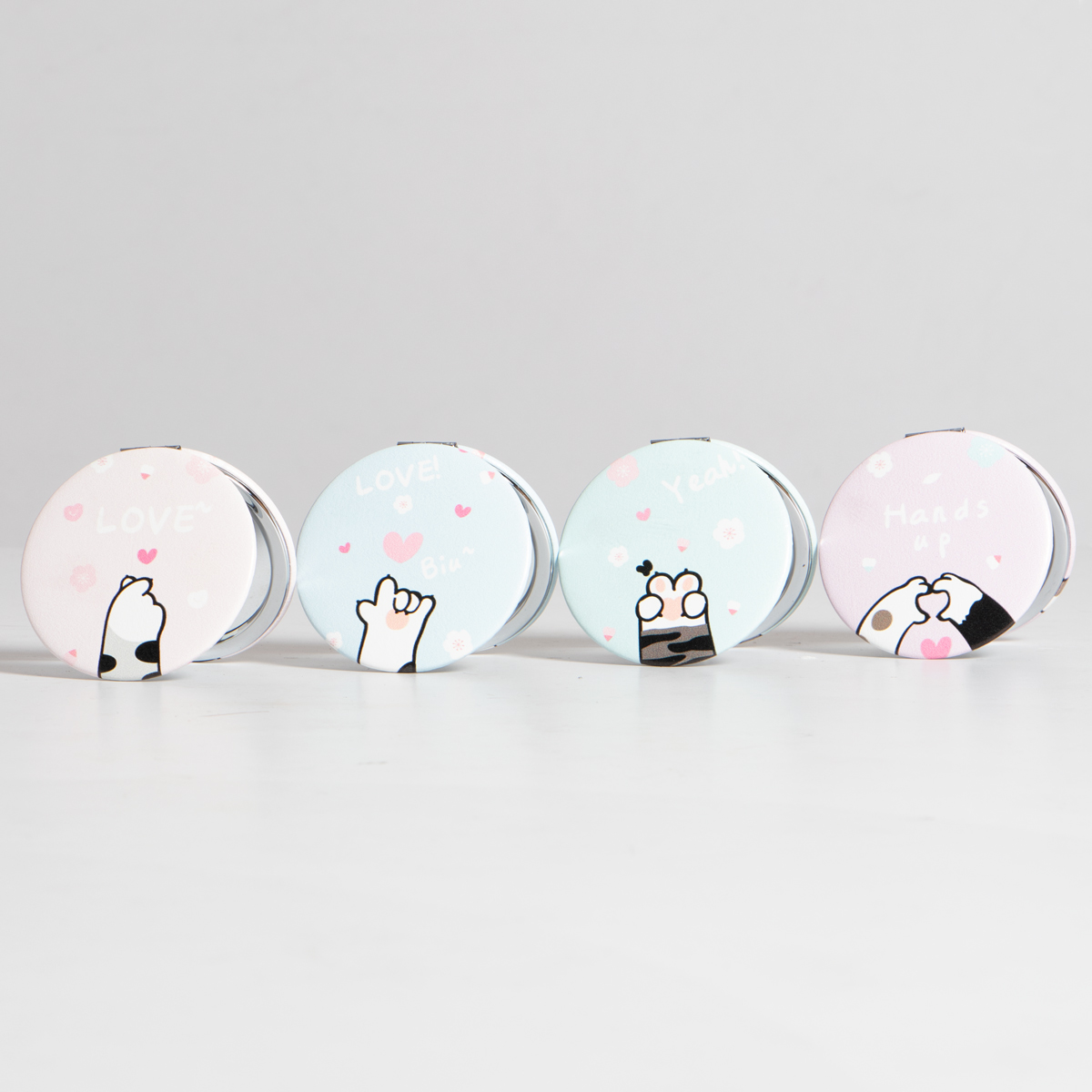 Contiene 2 espejos, uno de ellos tiene aumento. Es práctico para llevar en tu cosmetiquera y su diseño es hermoso. Viene en 4 estilos y el display X12UND.