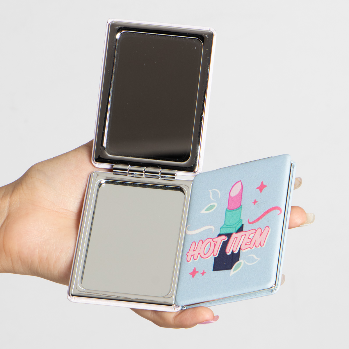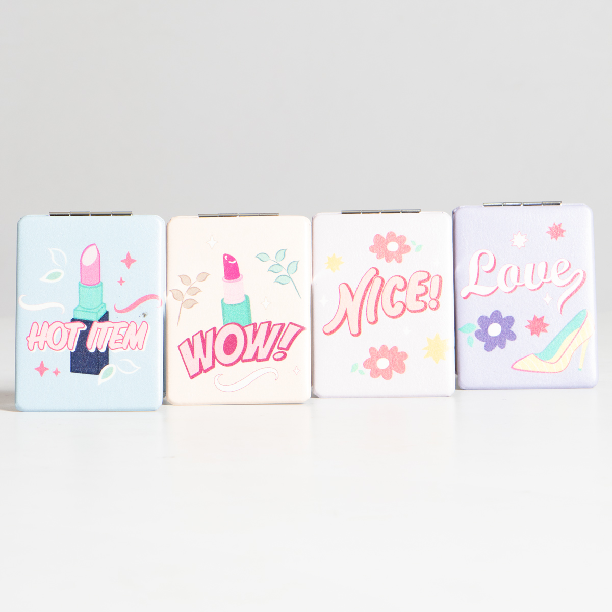 Contiene 2 espejos, uno de ellos tiene aumento. Es práctico para llevar en tu cosmetiquera y su diseño es hermoso. Viene en 4 estilos y el display X12UND.