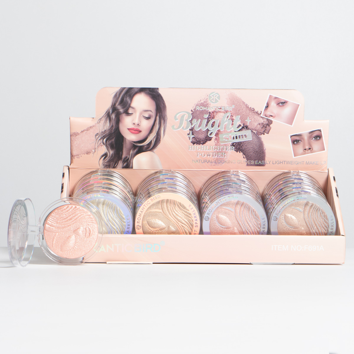 Su alta pigmentación permite conseguir un maquillaje perfecto e iluminado. Viene en 4 tonos y el display es X24 UND.