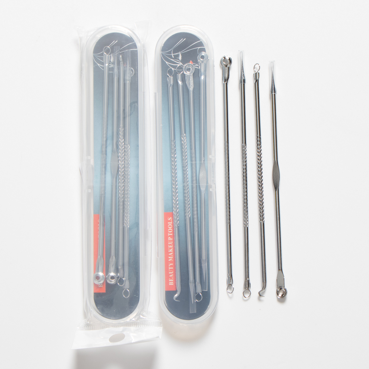 Contiene 4 utensilios perfectos para retirar cualquier espinilla o grano del rostro. Viene en bolsa X12 UND.