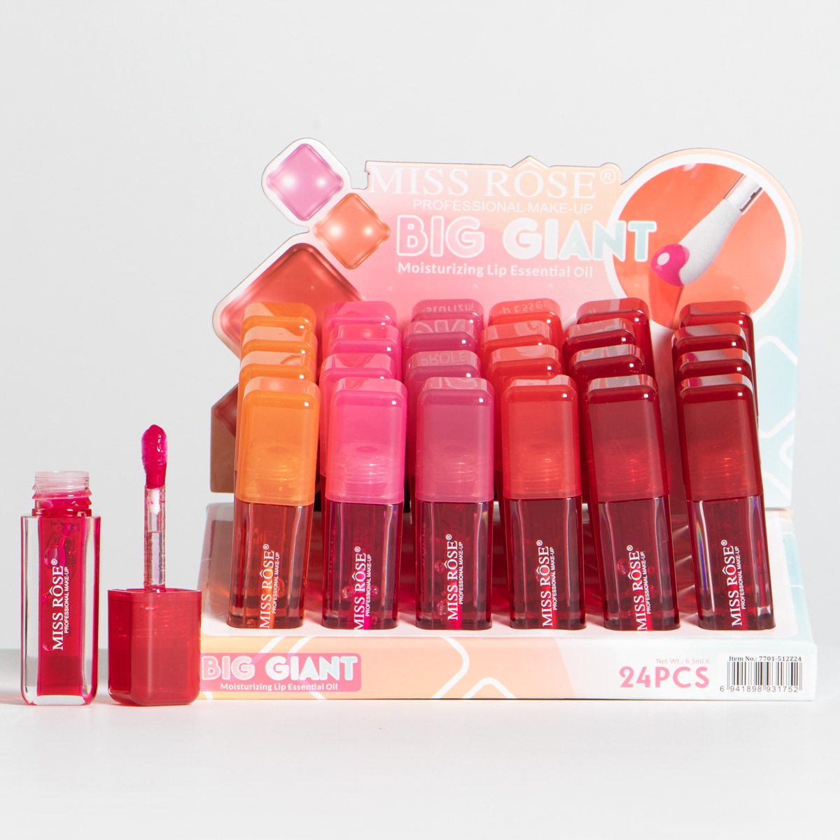 Es un aceite labial que da un color sutil y brillante, proporciona una hidratación intensa y da un efecto voluminizador. Su formula es ligera y no pegajosa su aplicador es XL y huele delicioso. Viene en 6 tonos y display X24 UND.