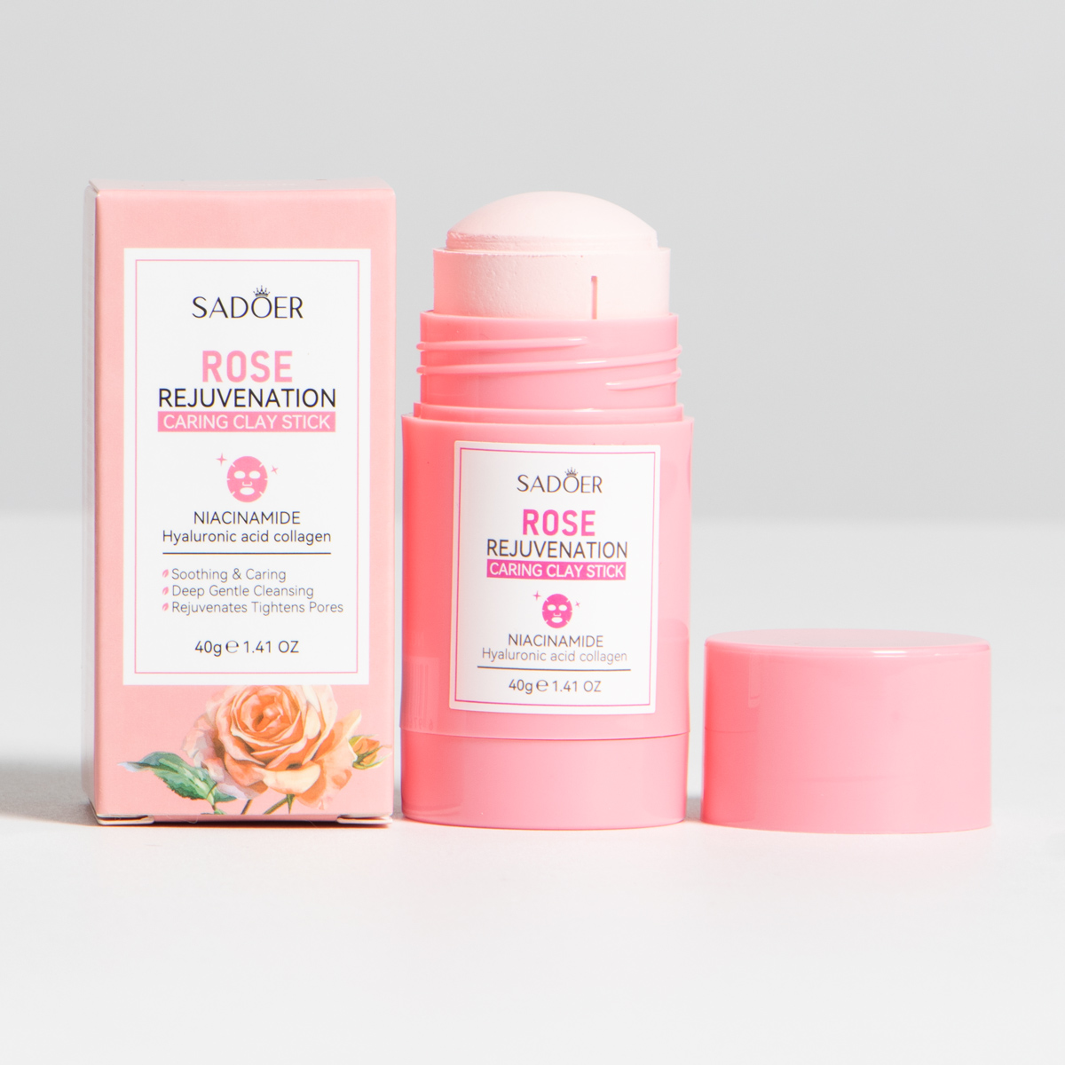 Esta mascarilla de arcilla contiene extractos de rosas que purifica los poros y la suciedad dejando la piel clara y radiante, la textura es suave y lisa. Viene en caja X24UND.