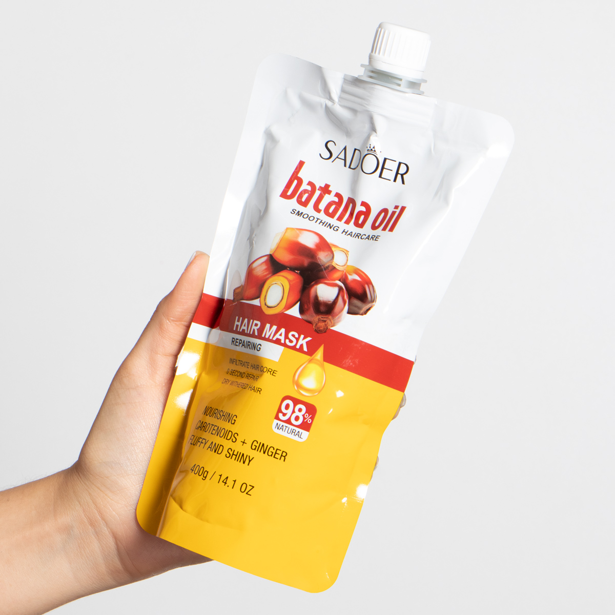 La mascarilla de Batana, sirve para nutrir, hidratar y fortalecer el cabello, así como para promover su crecimiento. También ayuda a reparar daños como las puntas abiertas, prevenir la caída del cabello y mejorar su brillo y textura. Viene en caja X12 UND