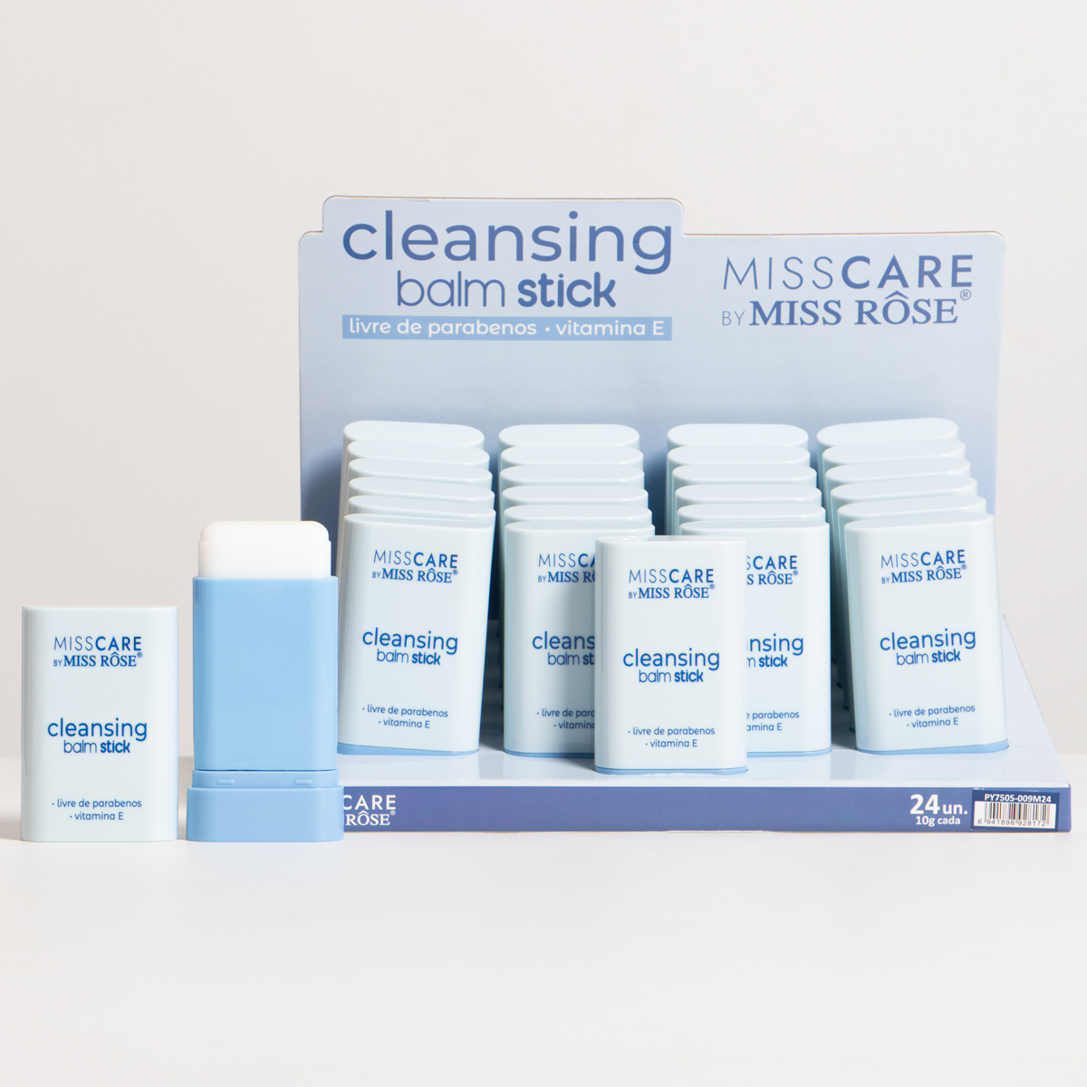 Su formato en barra lo convierte en un producto práctico y fácil de usar, basta solo con deslizar la barra sobre el área a desmaquillar, haciendo suaves masajes para que el maquillaje se vaya deshaciendo, luego se recomienda retirar los residuos con una toalla húmeda, y limpiar siempre la superficie de la barra para su próximo uso. Viene en display X24 UND