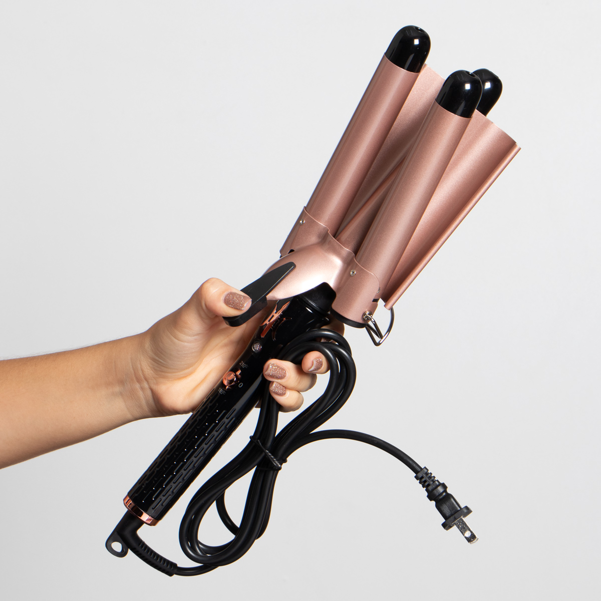 Este rizador para ondas cuenta con 3 cilindros que pueden crear facilmente las ondas mas hermosas en el cabello. Viene en 2 colores.