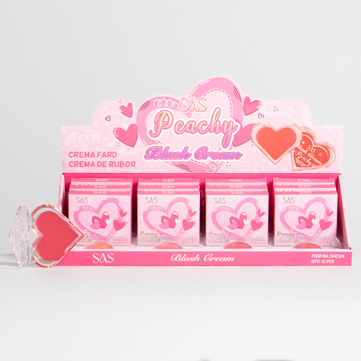 Es de textura cremosa que puedes aplicar con brocha, o si prefieres directamente en el rostro. Su pigmentacion es increible, la ventaja de usar un rubor en crema es su duración, quedará adherido a la piel de una mejor forma. Se puede utilizar como rubor, como labial y como sombra. Viene en 4 tonos y su display X12 UND.
