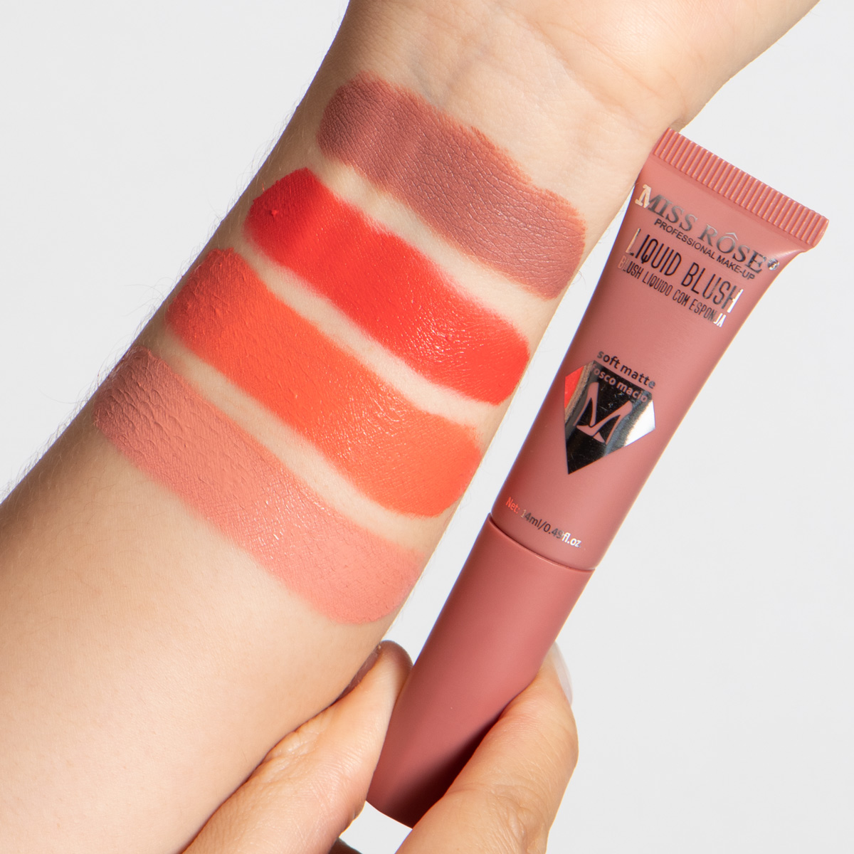 Rubor en crema con aplicador, con textura fluida e hidratante y lo mejor es no se siente grasoso, ni pegajoso. Es de larga duración. Viene en 4 tonos y el display X24 UND.