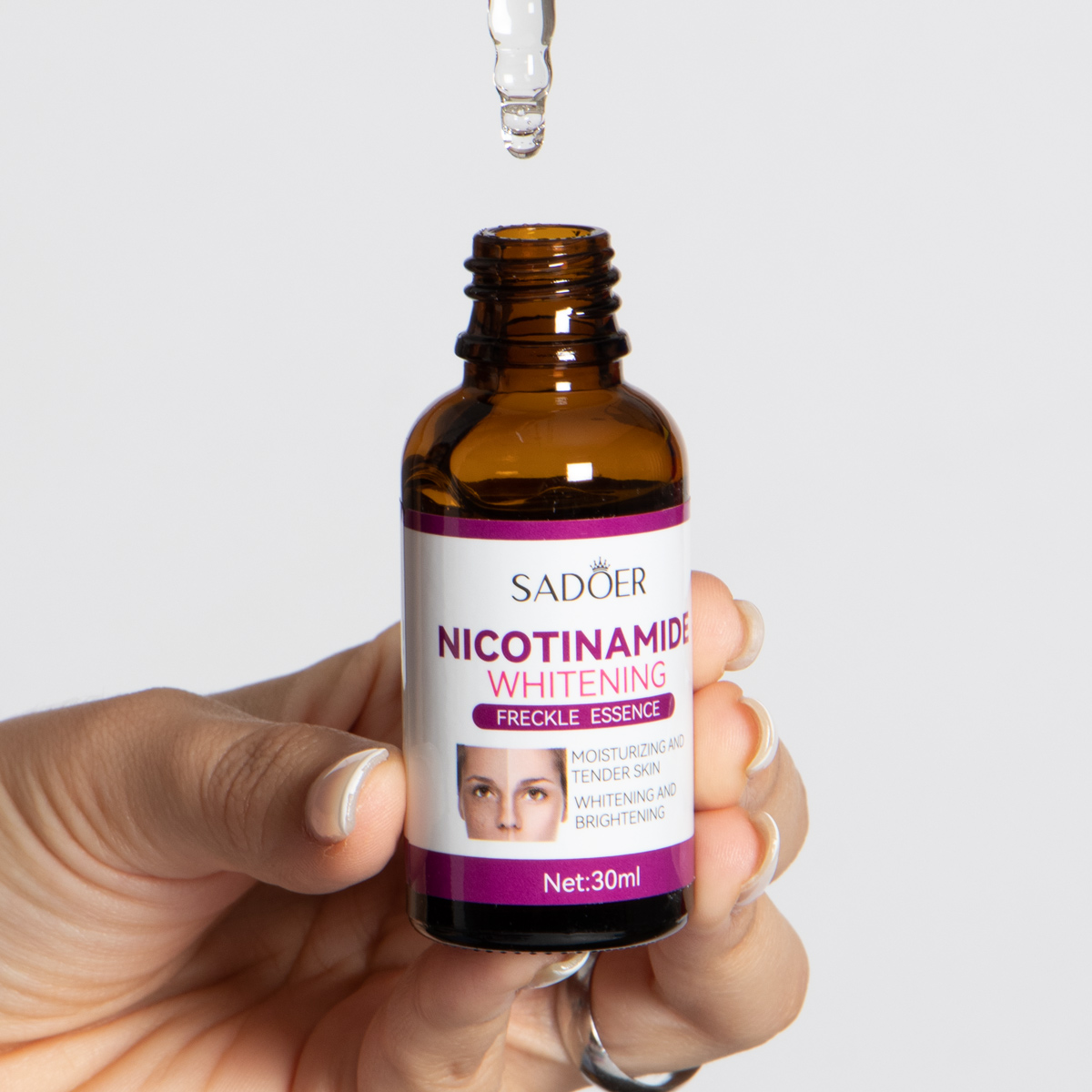 El serum de nicotinamida alivia la piel amarilla oscura, disminuye las manchas, hidrata uniformemente la piel, elimina pecas melasma y pigmento melanina. Viene en caja X24 UND