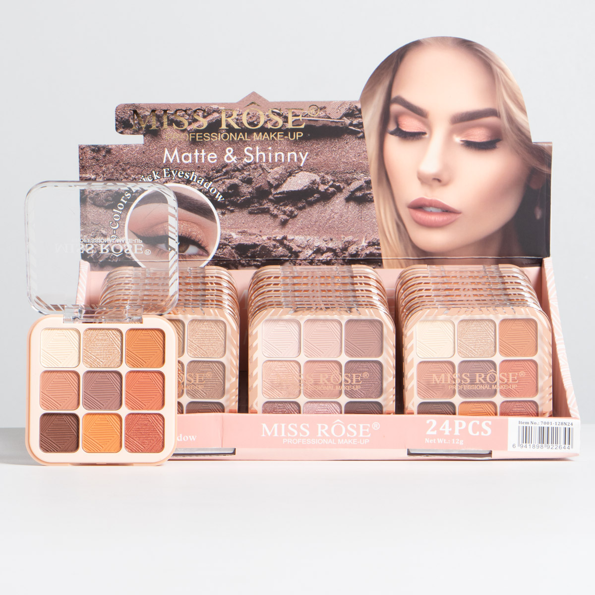 Contiene 9 colores de sombras distribuidos entre matte y satinados. Es de alta pigmentacion. Viene en 3 tonos y display X24 UND.
