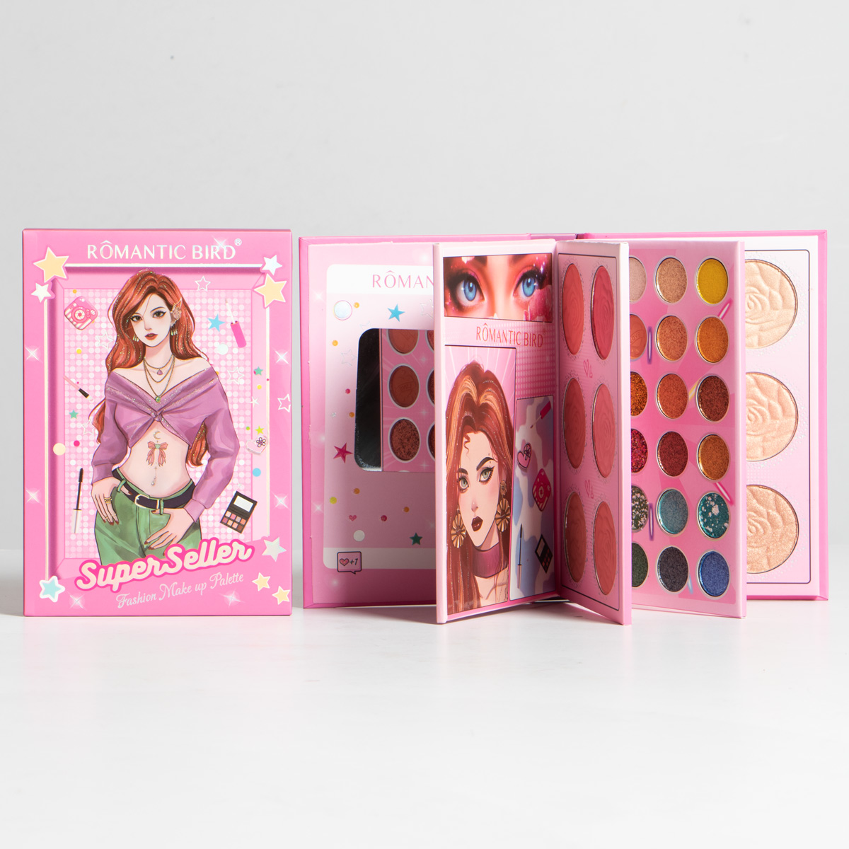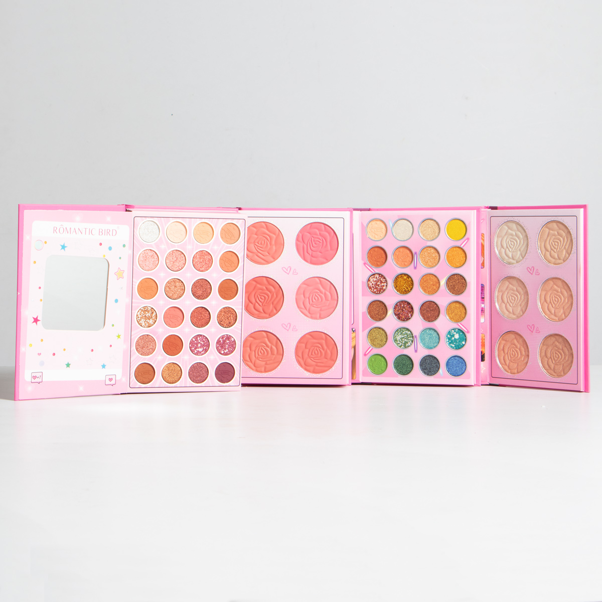 Contiene 46 tonos de sombras mattes y satinados, 2 tonos de glitter, 6 tonos muy versatiles que funcionan como rubores y 6 tonos de iluminadores. Contiene espejo. Viene en caja X6UND.