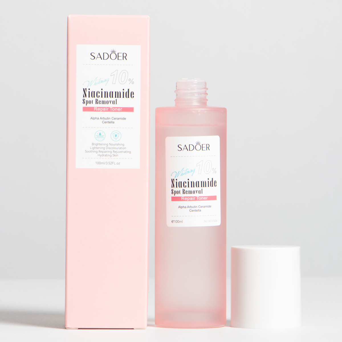 Este tónico facial es un producto diseñado para mejorar la apariencia de la piel, ofreciendo beneficios blanqueadores y reparadores. Su fórmula contiene niacinamida, un ingrediente conocido por sus propiedades para reducir manchas oscuras, unificar el tono de la piel y mejorar la textura general. Además, este tónico está formulado para hidratar y calmar la piel, dejándola con una sensación fresca y revitalizada. Viene en caja X12UND